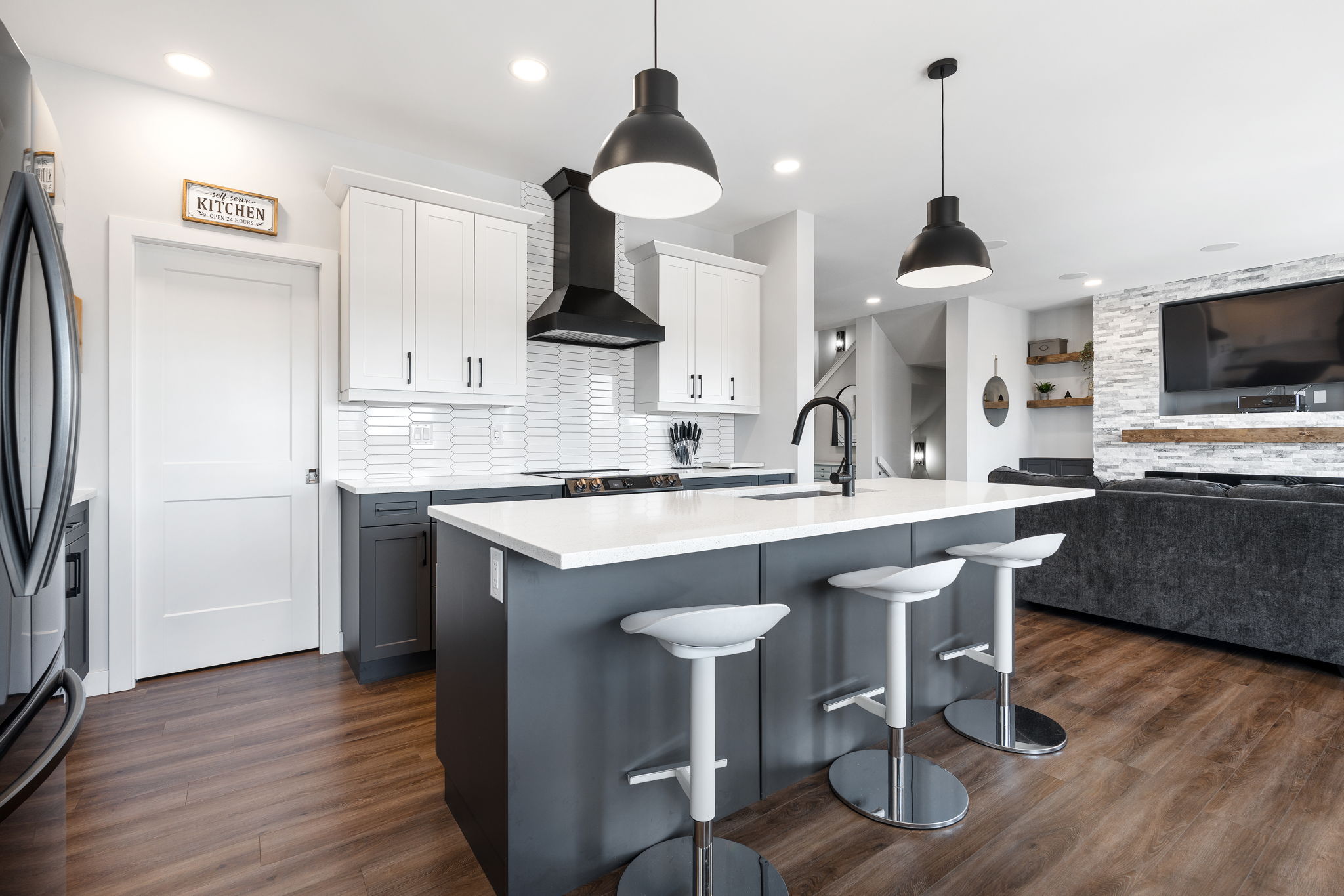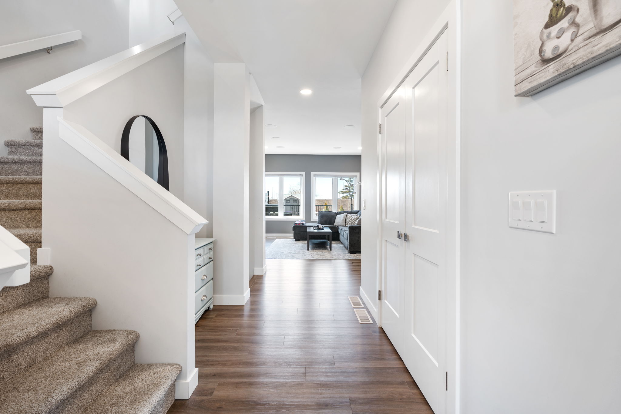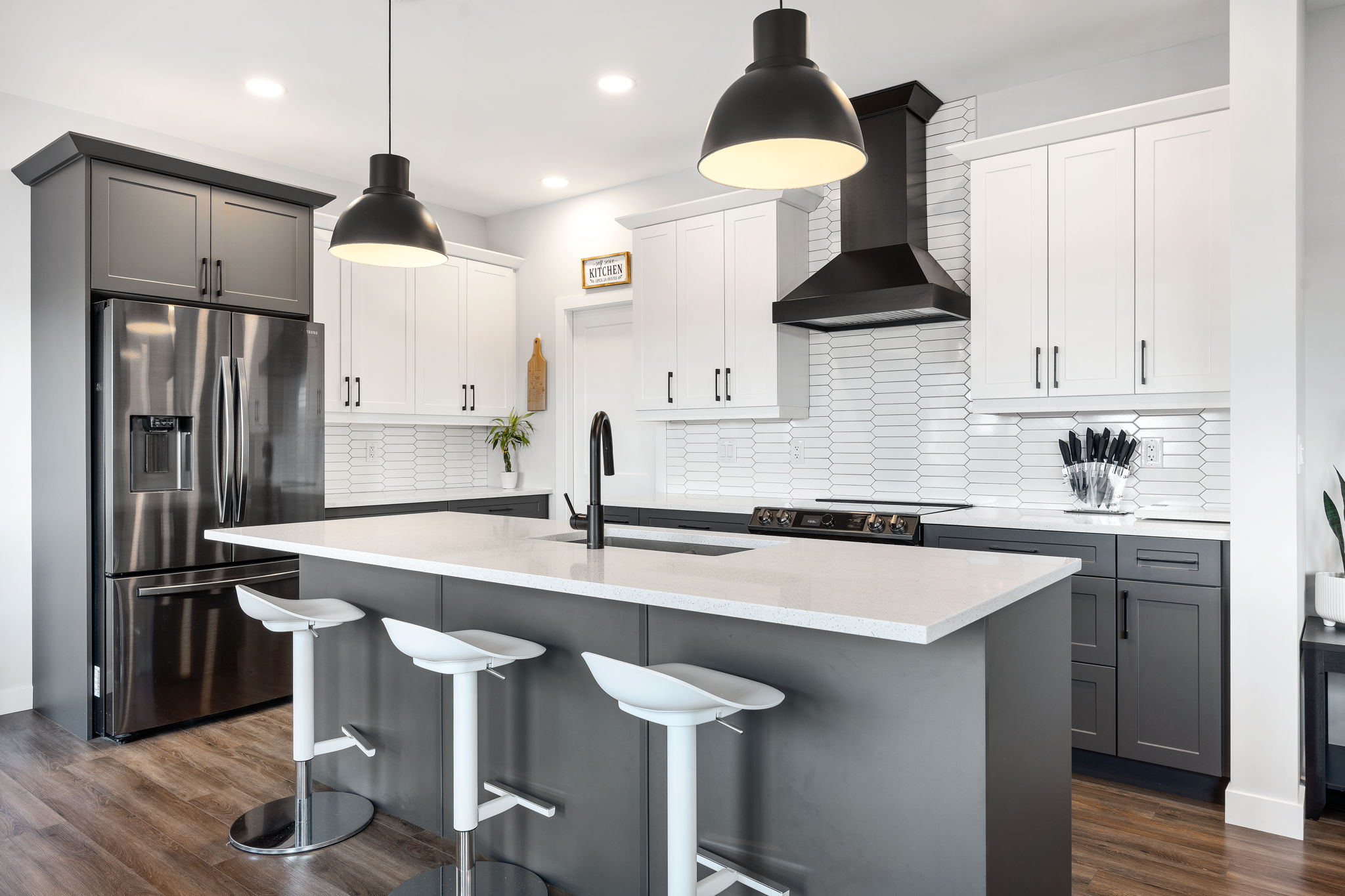 Gorgeous custom-built two-storey home in heavily desirable neighbourhood. From the moment you arrive, you’ll appreciate the beautiful curb appeal. Step inside to a spacious front foyer and a bright, open-concept main floor featuring 9′ ceilings and an abundance of windows for natural light. The stunning kitchen offers a huge island, custom cabinetry, and a walk-through pantry, overlooking the large dining area with deck access. The great room features a built-in entertainment unit and in-ceiling speakers. A huge mudroom with an oversized walk-in closet, garage access, and a 2pc bath complete the main level. Upstairs offers a loft, three spacious bedrooms, including a primary suite with a 5pc ensuite and walk-in closet, plus laundry and a 4pc bath. The basement is ready for your finishing touches with high ceilings, a 200-amp panel, and great potential. Outside, the fenced backyard features a 20′ x 32′ composite deck and hot tub. The 24′ x 24′ insulated garage is finished with epoxy floors. Quartz counters tops through out. Extremely well built and the details have been well thought out. Ask for a list of upgrades. Like new with all the extras included. Zero disappointments.