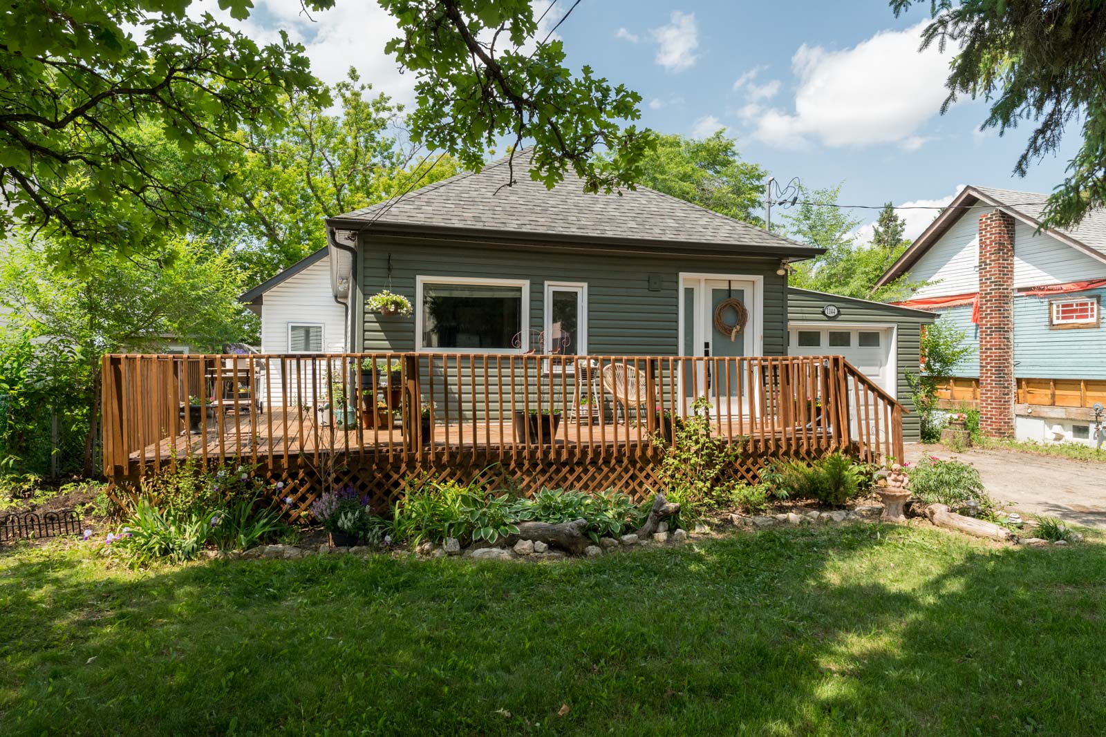 Looking for an updated home in a central neighbourhood? Don’t miss this open-concept 1,100 sq. ft. bungalow in the heart of West Fort Garry! You’ll be welcomed by a classic wrap-around deck to host family, friends and plants, full of south-facing sunlight. Walk into the bright main floor, featuring a renovated kitchen (2021) with new stainless steel appliances. Includes 3 bedrooms with great closet space and a 4-piece main bath with updated vanity. The lower level offers a second full bath, rec-space, and good storage. Steps away from Rapid Transit, bike and walking paths, a community dog park, and a garden coop. Quick access to Pembina and Waverley making going out, errands, and commuting a breeze. Additional highlights inc: PVC windows, high-efficiency furnace, central air, new floors on main level (2023) updated front vinyl siding (2023) new roof (2021 shingles, eaves, soffits and fascia) new exterior doors (2022), front drive with attached garage, lots of extra parking in the back and a fully fenced yard with mature trees and lots of garden beds for planting! Don’t miss this one, book your showing today!