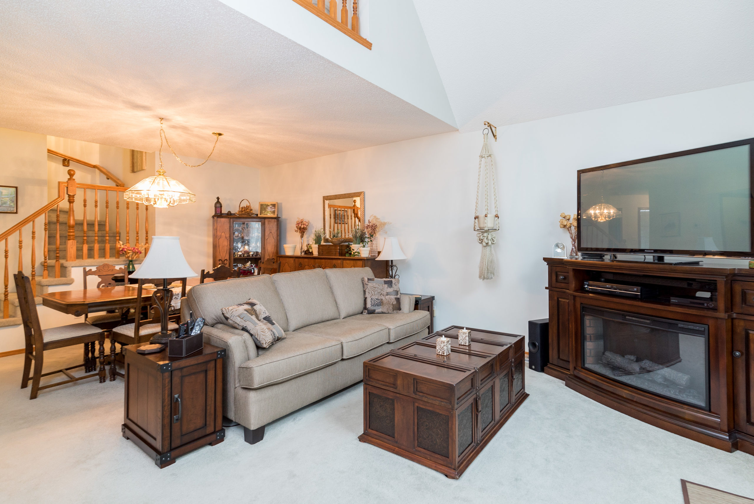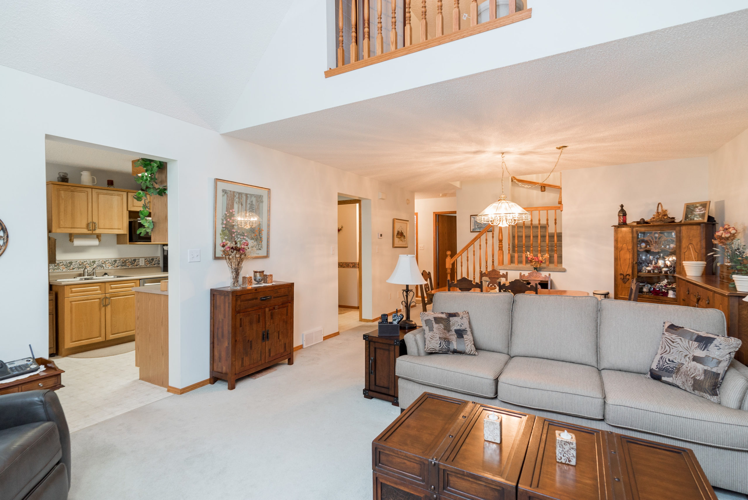 Gorgeous and well kept unit with private second floor loft/guest bedroom. Main floor offers a very open and spacious living and dining room with vaulted ceilings and exit to the backyard, generous oak eat-in kitchen with stainless steel appliances and charming bay window in the eating nook, 2 piece bath, sizeable main floor primary bedroom with large walk-in closet, linen closet, and spacious 4 piece en-suite bathroom. The second level boasts an open loft perfect for private office or guest room with closet and 3 piece bathroom. The fully finished lower level boasts a huge rec-room with built-in bar, 2 piece bathroom and large storage/laundry room. Other highlights include; single attached garage and front driveway, gorgeous exterior landscaping with composite deck and interlocking patio, maintenance free exterior, professional management and beautiful neighborhood close to parks, restaurants and all amenities.