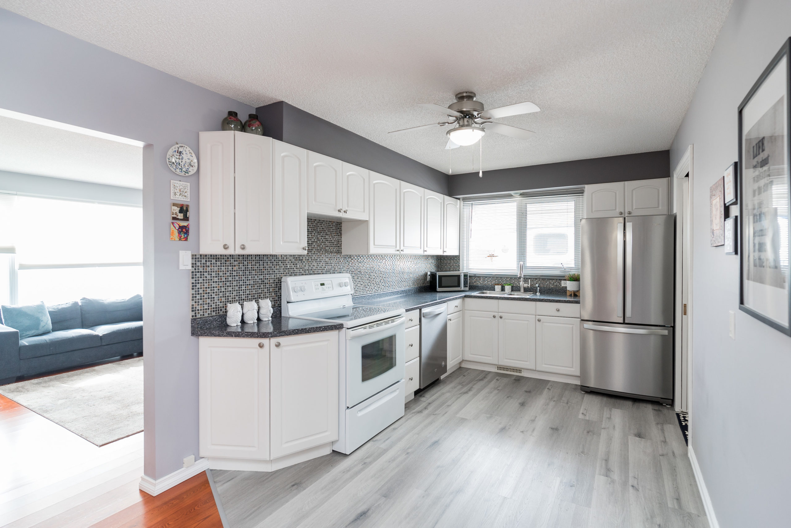 Beautiful bungalow, conveniently located on a quiet bay, extremely close to all major amenities. Pride of ownership is evident the moment you pull up to this property. It has been tastefully updated throughout including gorgeous hardwood floors, large kitchen with beautiful white cabinetry and a large eating area. Very inviting living room area. Two full baths including a remolded four piece on the main floor. Two good sized bedrooms on the main floor and extra bedroom in the basement. Gorgeous rec room area with walk up dry bar and additional three piece bath in the basement. Fully fenced yard with front drive access, large deck, two storage sheds and plenty of mature trees. Other upgrades include, shingles, front patio, kitchen, flooring, main bath, furnace, hot water tank, fridge, dishwasher and more. No disappointments, shows A+++.