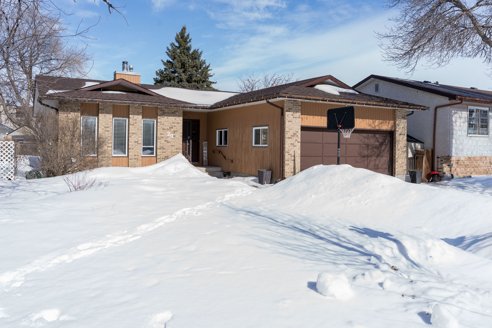 Great bungalow with attached double garage situated in heavily desired neighbourhood extremely close to all amenities including community centre and school. Pulling up to this home you will admire the great curb appeal. Stepping in the front door you are great by a huge front entrance with access to the basement and 20 x 22 garage. The main floor is complete with sunken family room overlooked by the large eat in kitchen, three generous sized bedrooms including a primary bedroom with ensuite and walking closet. The basement is complimented by a massive recroom, large utility room for storage, two more ample sized bedrooms and a three piece bathroom. The backyard is fully fenced (newer fence on the back portion) large 9 x20 patio and plenty of green space. Updates include shingles 2025, HWT 2023, high efficiency furnace 2019 approx. and more. Excellent layout and a heavily desired neighbourhood. Great Value.