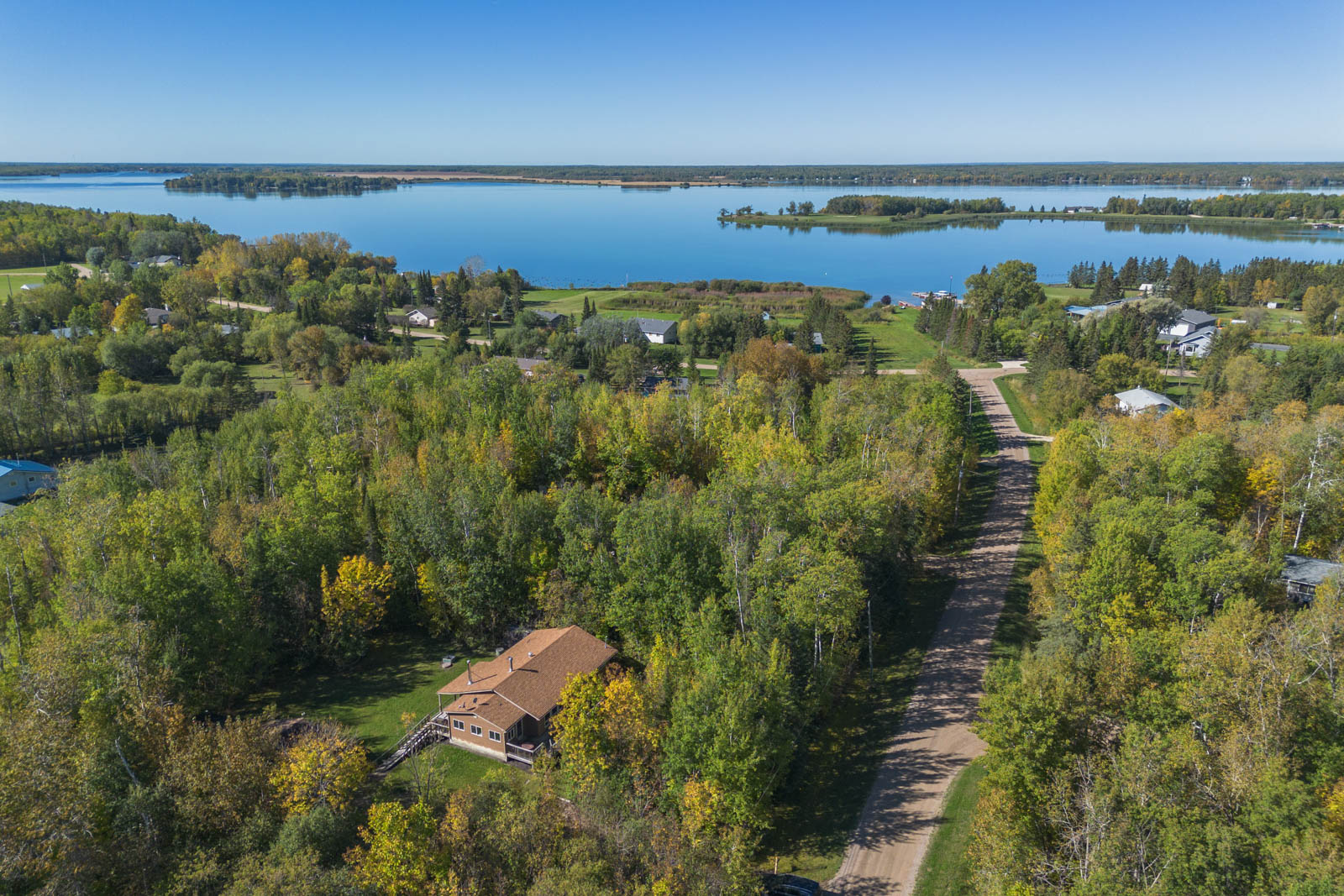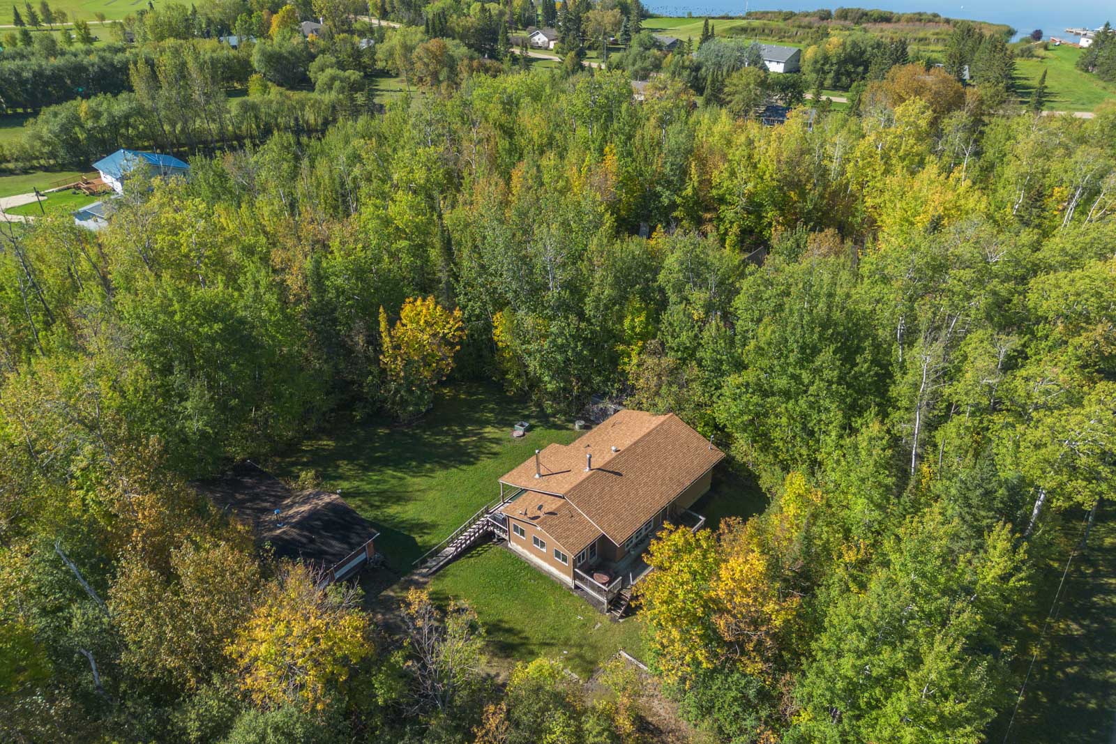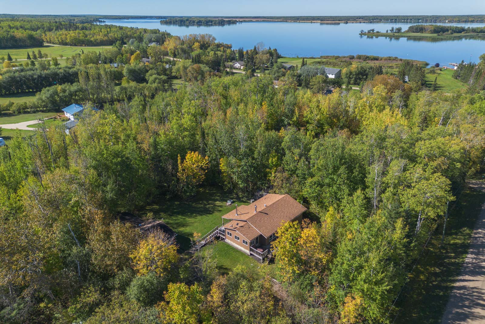 Welcome to Sunset Bay! This 4 season cabin on a quiet cul de sac has a great deal of potential. Large eat in kitchen with a wood burning fireplace. Spacious living room with cozy fireplace. 3 piece bathroom with renos done by Aqua Tech, 3 bedrooms and a generous size laundry room. Huge front and back deck (33’x8.4′) perfect for BBQ’s with friends, peaceful Bird watching or stunning sunsets. $40,000 spent on grade beams to lift cabin in 2015, well pump 2024, Vinyl siding 2012. Furniture to stay, along with 2 A/C wall units….all you have to do is move in! Just minutes away from the beach, boat launch, fishing, hiking trails and just 20 mins east of Lac du Bonnet.