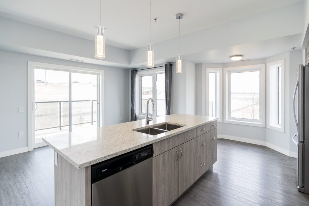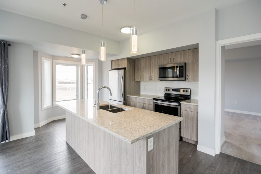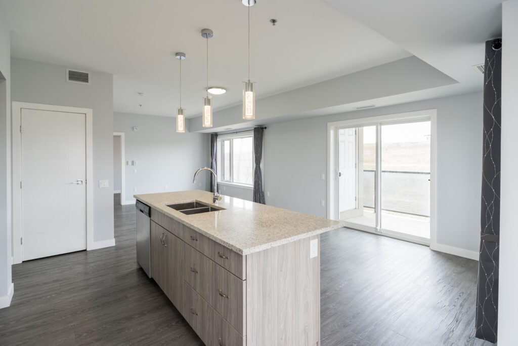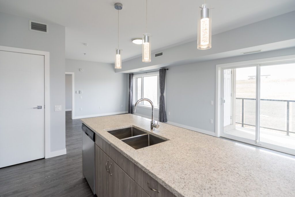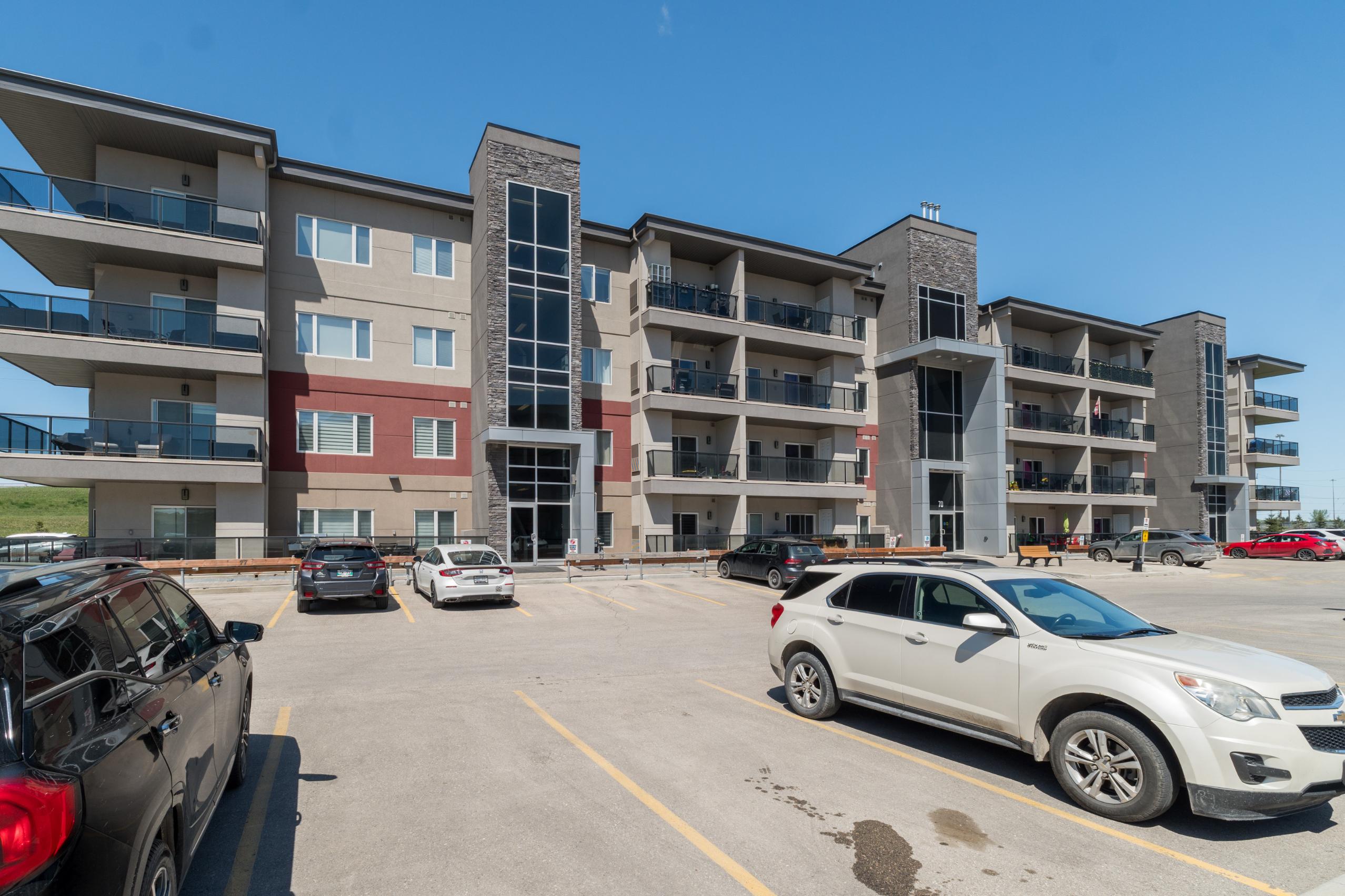 Welcome to Crocus Gardens! This bright and spacious 1,185 sq. ft. corner unit offers 2 bedrooms and 2 full bathrooms with a modern, open-concept layout designed for comfortable living and entertaining. The stylish kitchen features quartz countertops, upgraded KitchenAid stainless steel appliances, designer cabinetry, and a large walk-in pantry, flowing seamlessly into the generous dining and living areas with access to a private wrap around corner balcony. The primary suite includes a walk-in closet and 3-piece ensuite, while the second bedroom is ideally located near the 4-piece main bath. Enjoy the convenience of in-suite laundry and storage, along with modern laminate flooring. This unit includes one indoor parking stall. Crocus Gardens offers fantastic amenities including a clubhouse, party room, lounge, pool table, and fitness centre, all in a well-managed complex close to shopping and everyday conveniences. Largest layout in the project!