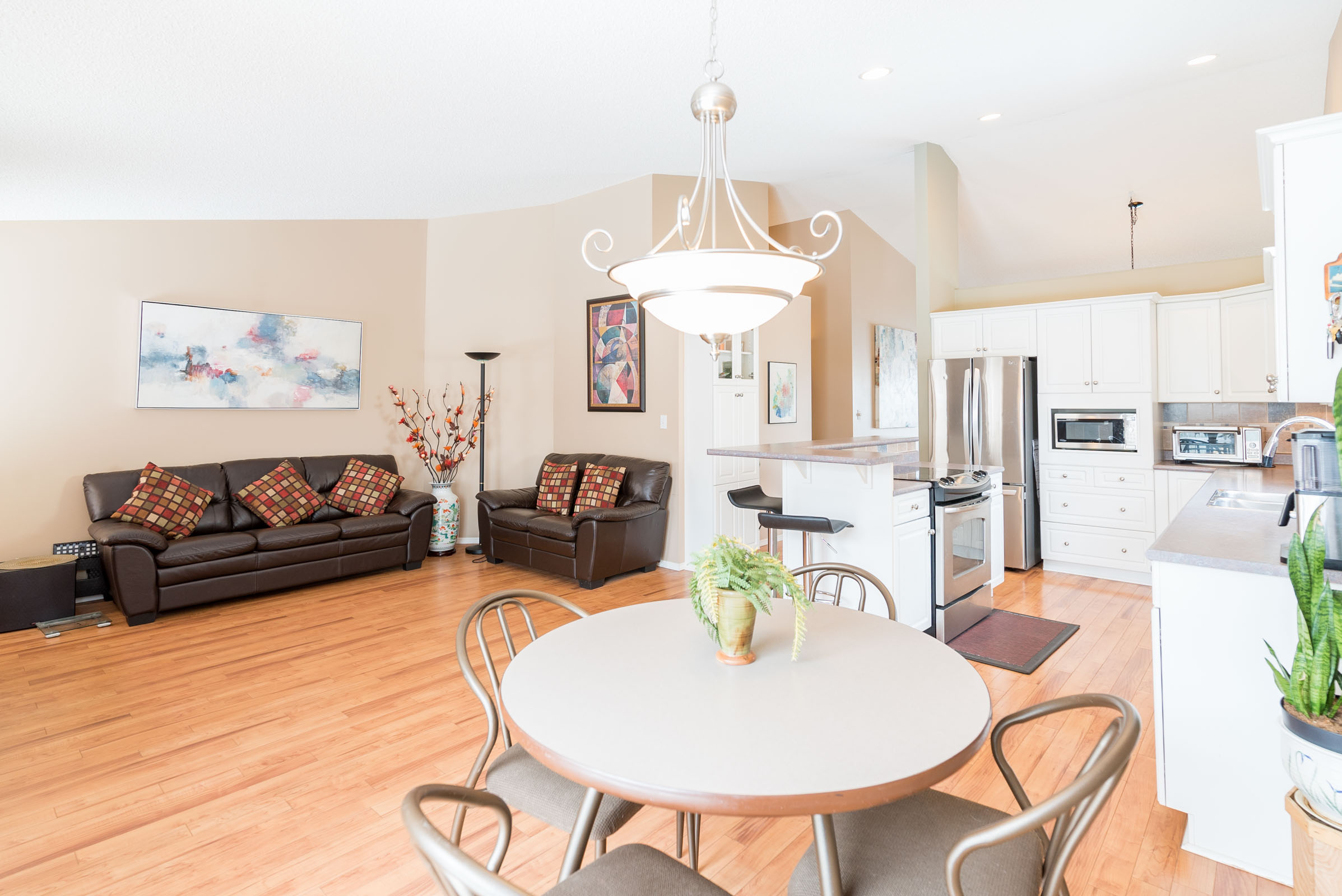 Welcome to 23 Orford Cres located in desirable River Park South. The moment you head inside you are greeted with a large open dining/family area with large windows to allow in all the natural light. Head inside the bright white kitchen, with large breakfast bar loads of counter space & cabinetry as well as 4 appliances to stay, patio doors off the eating area to the fully landscaped backyard perfect for entertaining. The spacious primary bedroom offers a 3pc bath and walk-in closet as well as 2 more generous-sized bedrooms and a 4pc bath finishing off the main floor. Let’s take a look downstairs at the large fully finished basement offering 2 bedrooms, 4pc bath and a huge rec room with custom stone wall and wet bar. The perfect space to host all your friends and family! formal living room. bright open living/dining area.