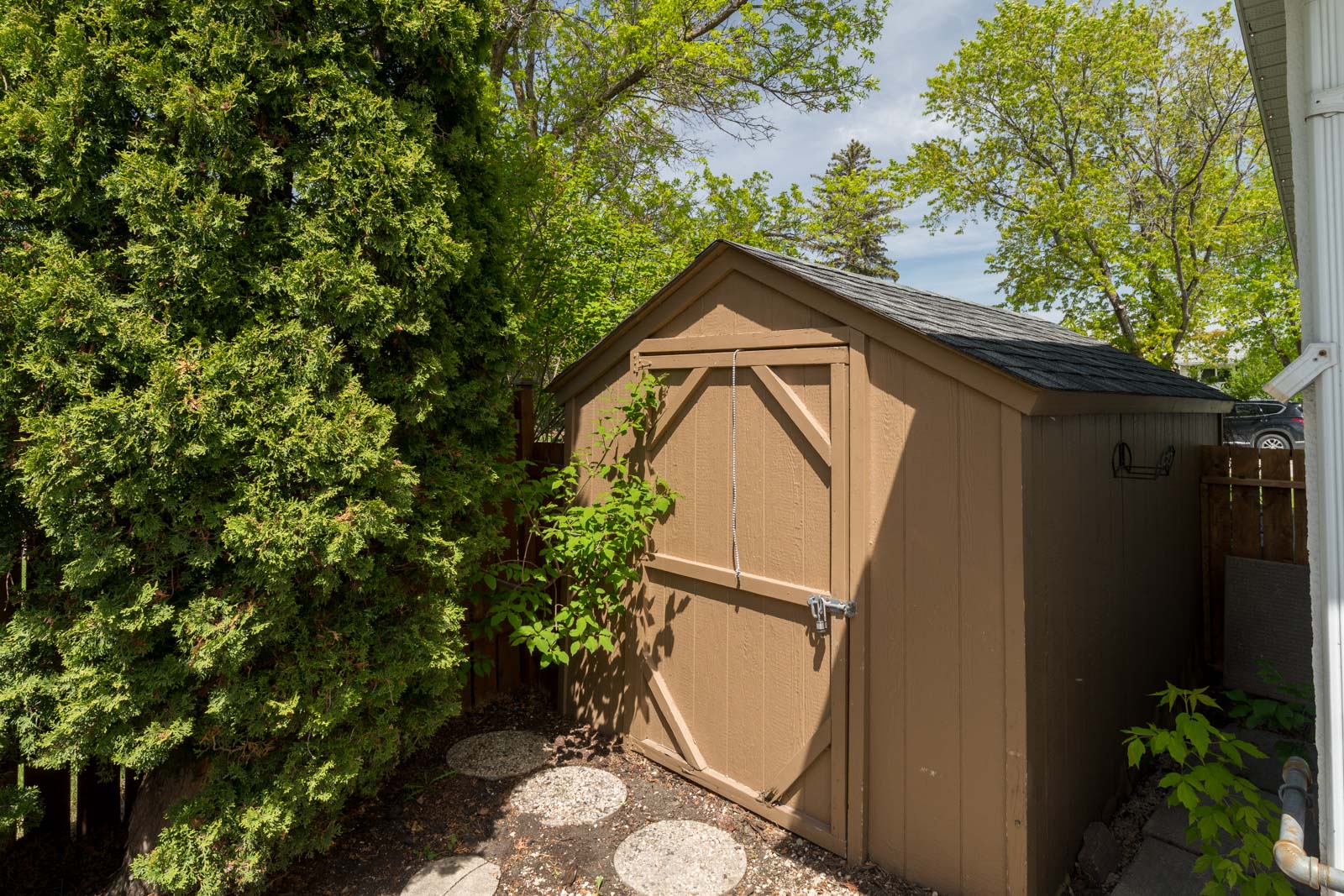 Charming 1,045 sqft bungalow featuring 3 bedrooms, 2 full baths, and hardwood floors throughout most of the main level. Bright living room includes a cozy electric fireplace and flows into the dining area with a large bay window. The kitchen is filled with natural light and features a built-in eating nook and 5 stainless steel appliances (2022). Updated 4-pc bath completes the main level. Fully finished basement offers a spacious rec room, games/hobby space, wet bar, gym room, and a stylish 3-pc bath, complete with newer vinyl plank flooring. Additional features include central vacuum, high-efficiency furnace & central air (2010), updated windows, shingles (2013), and stucco painted (2019). Beautifully landscaped, south-facing backyard is a gardener’s dream with interlocking brick paths (2018), patio, and abundant perennials and shrubs. Double detached garage plus storage shed. Conveniently located close to a park, schools (K-12), and Chief Peguis Trail walking/biking paths. Move-in ready with thoughtful upgrades throughout!