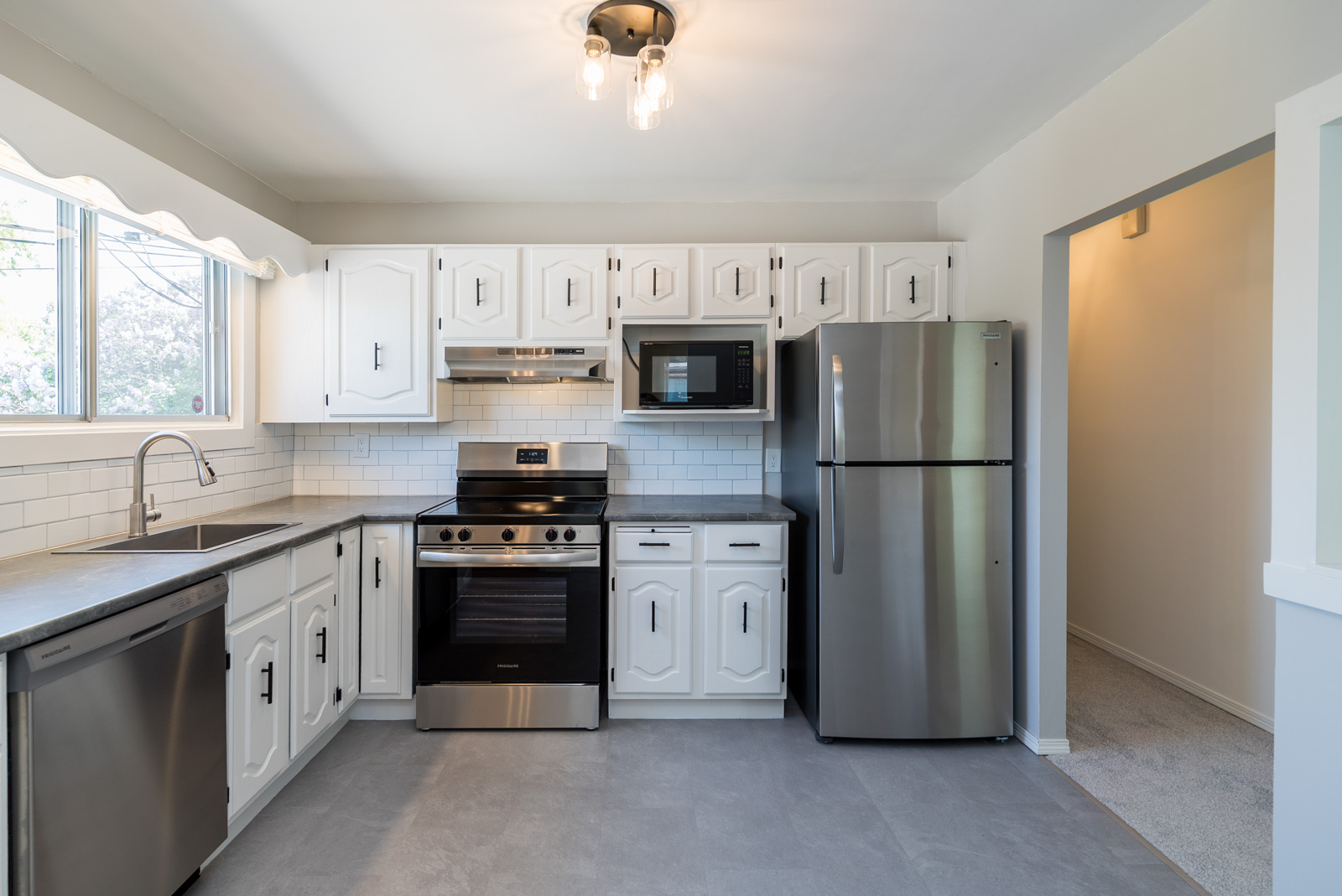 Welcome to this gorgeous three-bedroom bungalow located in a highly sought-after neighborhood, just minutes from all major amenities. This home boasts exceptional curb appeal and a long list of upgrades. Step inside to find an inviting L-shaped living and dining area, a fully remodeled eat-in kitchen with brand-new stainless steel appliances, and three spacious bedrooms. The bright, updated main floor bathroom adds to the move-in-ready feel. The finished basement offers an expansive recreation room with a wet bar, a flex room (potential bedroom with egress window installation), a large utility area, and ample storage. Outside, enjoy front-drive access to an oversized single detached garage and a generously sized backyard, perfect for entertaining or relaxing. Key Updates and Features: Shingles (2016), Furnace & A/C (2010), Hot Water Tank (2021), Flooring, Bathroom, Kitchen, Paint, Blinds (All 2025), Soffits, Fascia, Siding (2010), Hardwood flooring under most main floor carpet. This is a solid, well-maintained home with nothing left to do but move in. No disappointments – a must-see!