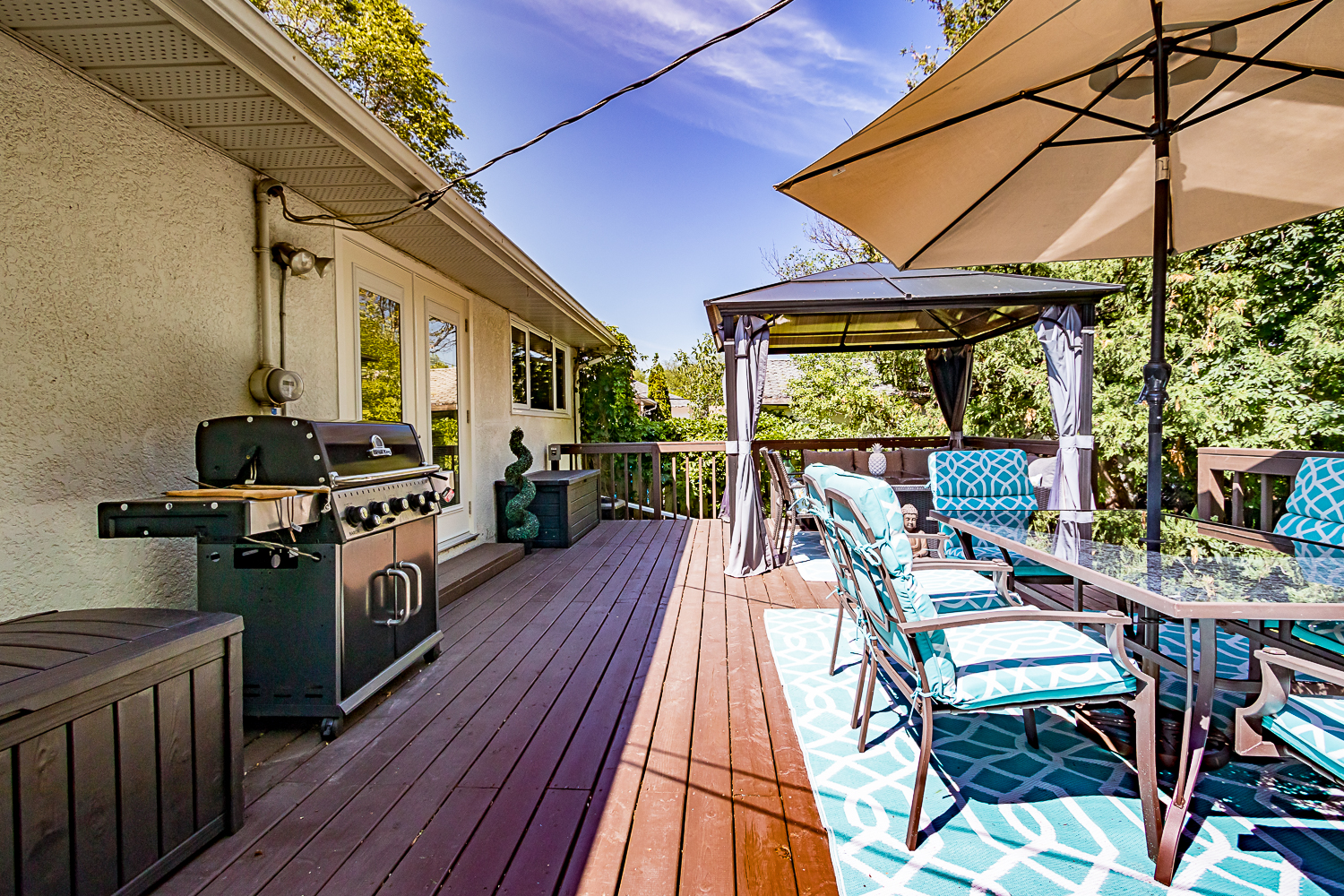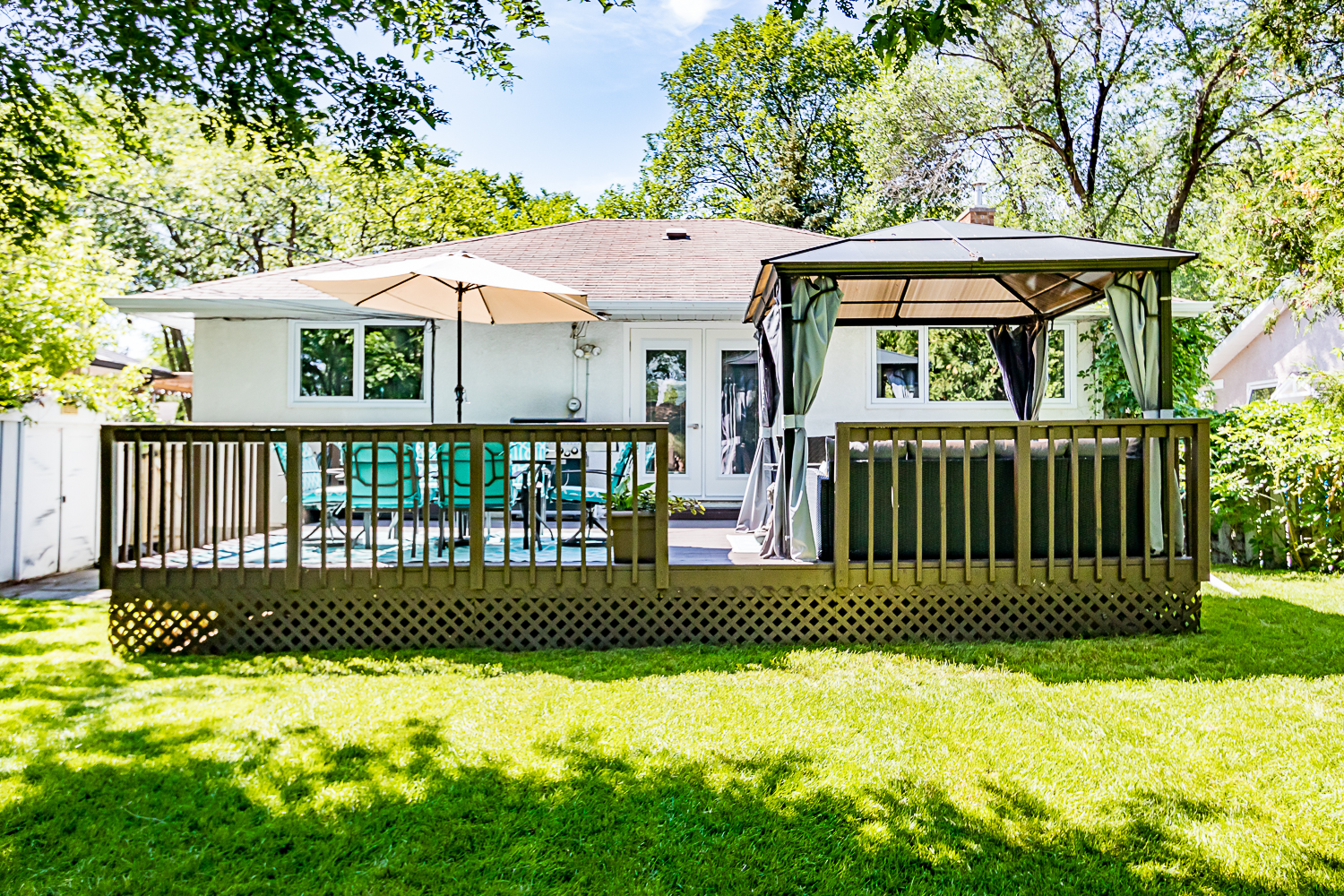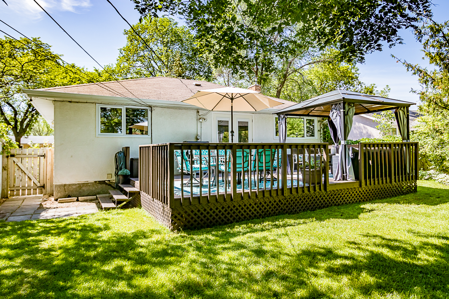 Classic 3 bedroom-2 bath bungalow loaded with upgrades available now in West Transcona! The main floor offers: a spacious eat-in kitchen with espresso cabinets, tons of storage/counterspace and newer stainless steel fridge & stove, generous living room with gas fireplace, modern tiled main bath with an absolute dream of a jetted tub, sizable master bedroom, and 2 generous additional bedrooms. The fully finished lower level boasts an open concept rec-room, 3 piece bath and large storage/laundry room (washer & dryer remain). Other features include: Updated PVC windows throughout the main level (2018), updated High Efficiency furnace, updated central air, H20 tank (2018) & Sump pump. All this located on a breathtaking “park like” lot with huge raised deck (24 x 16) and mature trees. Fabulous west Transcona location close to shopping, restaurants, schools and all conveniences. (Gazebo and play structure can remain).