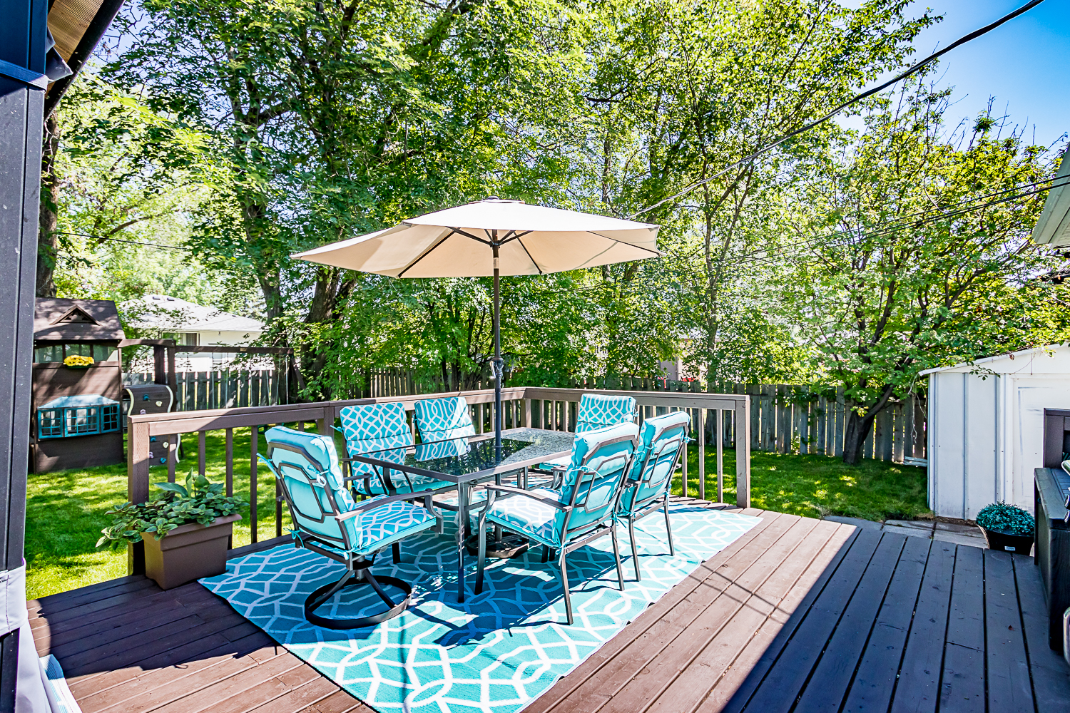 Fenced, Landscaped deck, No Back Lane, Paved Street, Playground Nearby, Shopping Nearby, Public Transportation, Treed Lot