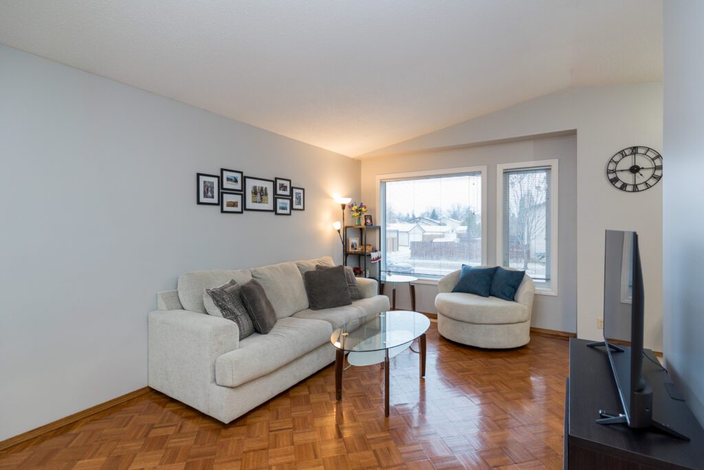This solid bi-level home is ideally located and move-in ready! The main floor offers a bright and spacious living room, an inviting oak kitchen with adjoining dining area, a generous primary bedroom, a second bedroom, and an updated 4-piece bathroom featuring a new tub surround. The main-floor bedrooms have just been refreshed with brand-new carpeting, and freshly painted main area, giving it a clean and modern feel. The fully finished lower level provides even more living space with a large rec-room, an additional bedroom, a convenient 2-piece bath, and a laundry/storage area. Notable features include PVC windows, a high-efficiency furnace, central air, updated shingles (2024), soffits, eaves and fascia (2024) hardy board siding (2024) and more. Outside, you’ll find a large concrete driveway, a nicely sized backyard with patio, garden and storage shed—perfect for relaxing or entertaining—and direct access to beautiful Morley Care Park. Ideally located close to schools, transit, and all amenities, this home checks all the boxes!